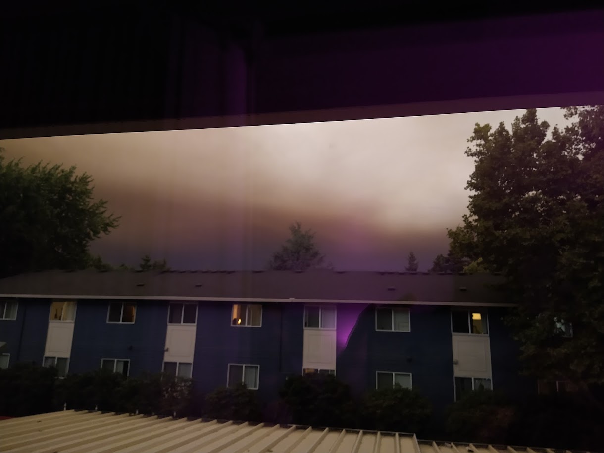 A wall of smoke from the Oregon wildfires as it approached the podcast hosts’ home, September 9, 2020. This is what 376 AQI looks like.