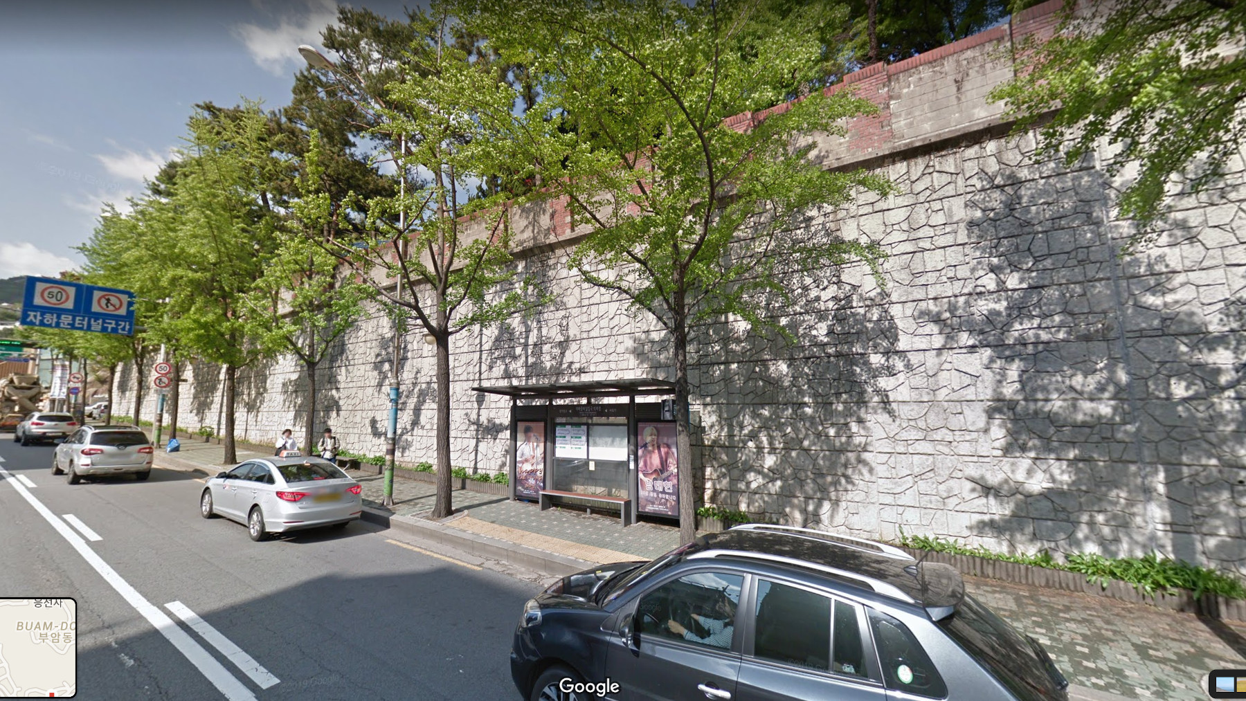 The Google Street View of the Jamahun Tunnel Entrance in Seoul. The “staircase” scene in Parasite was filmed here, but the stairs themselves are not visible from this side of the street. Here’s the link to the Google Maps panorama.